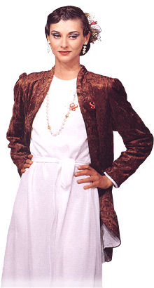 white dress with coffee jacket and ivory dress with burgundy jacket.