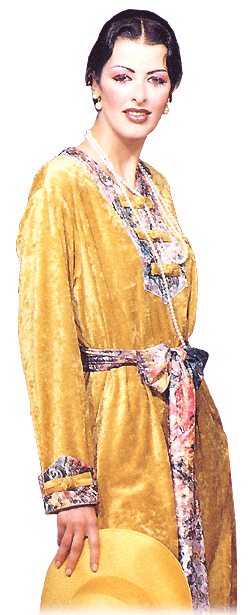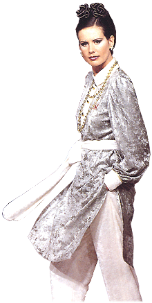 適合飲茶、外出購物的休閒服飾,輕鬆舒適又不失高貴的氣派,瑪瑙絨套裝搭配褲子或裙子,出色又和諧的色彩搭配,予人浪漫高雅的印象,天衣美人所到之處,盡是欣羨讚美的眼光!