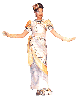 意謂把眾生都「度」空!下身的斜型弧度搶眼但含蓄,不是一定的排法,和諧而有韻味,女性氣質表露無遺。上身的布面交錯,剪接配合得當。泡袖的設計高貴,袖口的位置恰到好處。上下身的中空部份鑲珠鍊,優雅而婉約,喚起女性天生的女性美,雍容雅致,有母儀天下的尊貴。