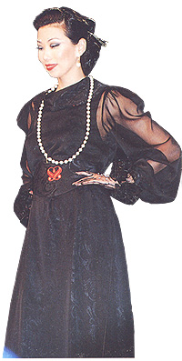 overlaid with chiffon. A soft wide belt further hightlights