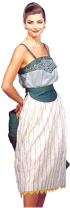 lining extends just below the soft waist-pleated knee-length skirt.
