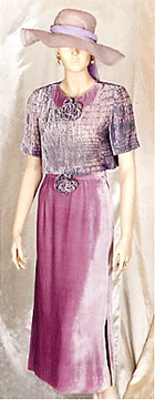 The ornamental velvet flowers on the waist and the front of the blouse compete with each other at a distance.