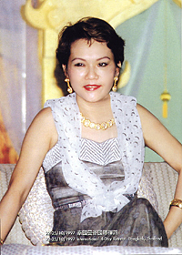 3-D visual effect. The outfit reflects elegantly and lively.