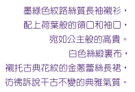 frilled neckline and cuffs, this long dark green sleeved silk