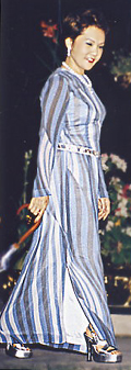 The wavy pattern on this pure silk garment makes it appear like the flowing water of the pure ocean.