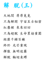 「『解脫』是指從所有困擾你的事物中解脫,從所有不好、不高尚、不美的事物中解脫,從所有綁人、令人窒息、有罪惡感以及讓人背離上帝的事物中解脫,從所有使人慾火中燒的激情和衝動的慾望中解脫。」